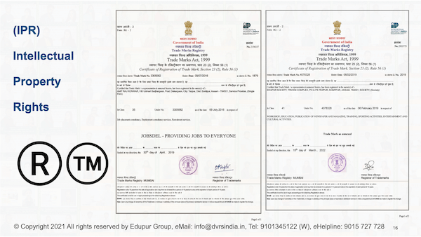 - Registered under Ministry of Corporate Affairs, Startup India recognition, GST, MSME & GEM registered, Intellectual Property Rights registered under Govt. of India.