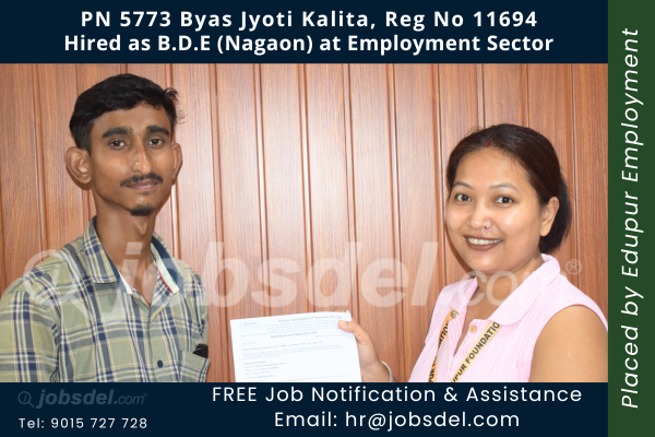Interview Results Byas Jyoti Kalita Hired as B.D.E (Nagaon) at Employment Sector Read More Nayanjyoti Basumatary July 19, 2025